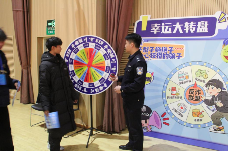 互动体验区内,“反诈视力表”“反诈盲盒挑战”“骗局解密工坊”等趣味互动项目有序开展,我校学生代表积极参与其中,在轻松愉悦的氛围中辨析诈骗陷阱、巩固防骗知识、提升识诈能力。活动现场设置的“国家反诈中心APP极速通关”指导站,安排专人指导学生快速掌握国家反诈中心APP的下载、注册及核心功能使用方法;“警茶局”公益饮品点则以暖心服务传递安全理念,进一步强化了反诈宣传的亲和力与实效性。